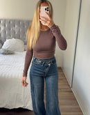 Un jean au style affirmé qui revisite les classiques avec sa fermeture boutonnée. Sa coupe droite et sa taille haute allongent la silhouette tout en restant confortable. Parfait pour un look moderne, à associer avec un pull ou une chemise rentrée pour mettre en valeur la taille.